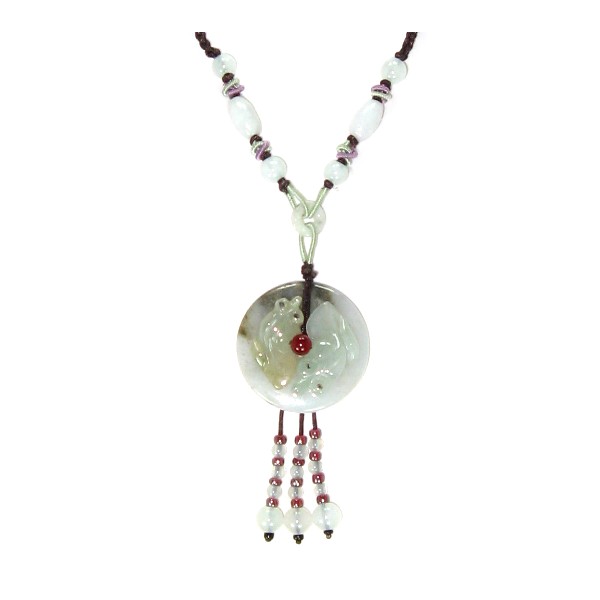 Representing good fortune, wealth and peace the auspicious pi disc and jade beads fish necklace is an excellent way to wish friends good luck and happiness. Fish is believed to bring good luck and fortune to people as a blessing that people enjoy more than they need at the end of every year, financially and spiritually.