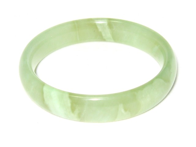 The color of this traditional Chinese jade bangle is not pure green, but a mixture of light green, yellowish green and relatively shadowy green. If you observe carefully, you might find a pattern in the fine and artful mixture, and you can see lines between areas of different color.