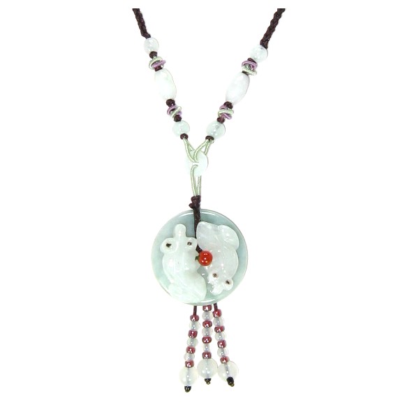 Chinese jade necklace with two cute fish and beads, blessing the wearer with wealth and health. Fish and jade are both auspicious things in Chinese culture. Fish represents wealth while jade is believed to be able to improve health. With the Chinese cute beads jade fish necklace on your neck, you not only have good health but wealth.