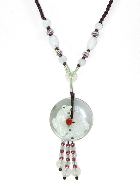 Dainty fish necklace made of Chinese beads jade, very lively-looking, suitable for all teenage girls. The Chinese dainty beads jade fish necklace is really great for teenage girls. You see the two fish look very cute. Young girls would look very lovely wearing it.