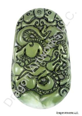 This Chinese green jade pendant will protect the wearer from anything harmful, bringing you much good fortune. The dragon is a powerful, strong animal in Chinese mythology. Chinese believe it has got magical powers so they like hanging up paintings or wearing products of dragon. If you want to be protected from harmful things and have good fortune, the Chinese green jade dragon pendant is perfect for you.
