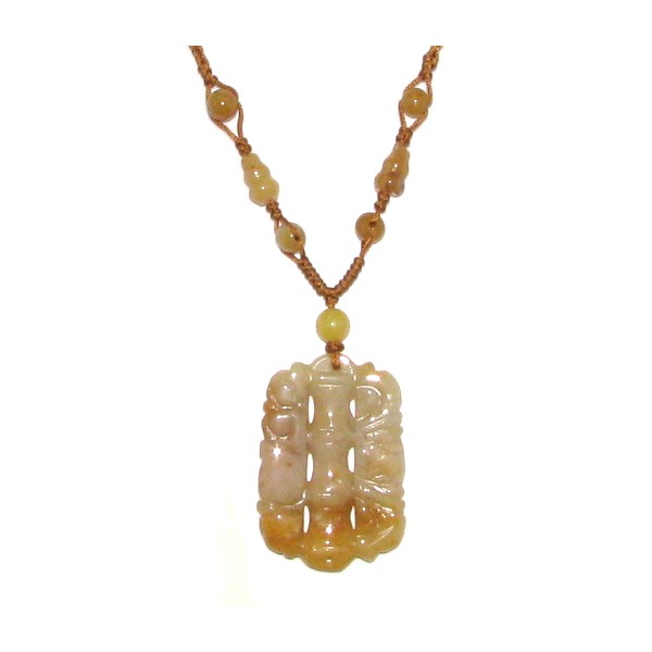 The Chinese valuable honey jade necklace is really great. The pendant looks like a Chinese antique, making this necklace very valuable. You can also see the cord is tied in Chinese knots, a traditional art. These altogether make this necklace a great gift for anyone.