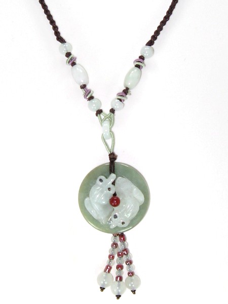 This is a perfect ornament for your everyday clothing. The delicate selection of jade of different colors made this necklace classy. The milky jade fish of this typically traditional Chinese necklace is highlighted by the green jade background.