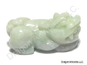 In the fortunate green jade pendant of crouching pi xiu, you see this animal is so strong and has a big mouth. It can drive away anything evil and brings in good fortune. Your luck is getting better and better every day.