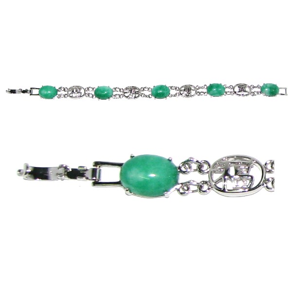 Chinese culture likes auspicious things for the elderly. The Chinese blessings green jade bracelet is an ideal gift for them. It is beautiful and auspicious. The symbols made of silver mean good fortune, longevity, health and peace. It wishes the wearer everything the best.