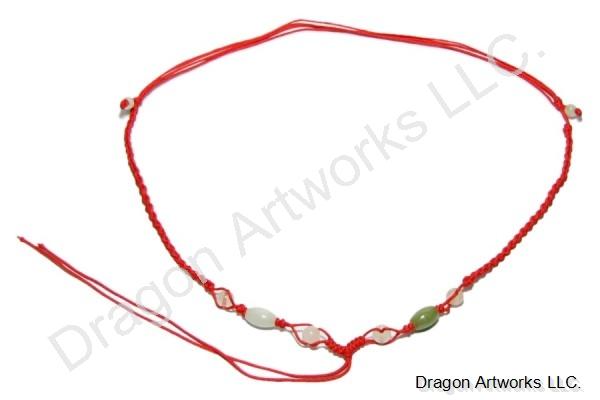 Chinese necklace cord with beautiful natural green jade beads available in four attractive colors to compliment any jade pendant. Available in black, red, brown or green. The bead color will vary with each cord as they are made using natural green jade beads.